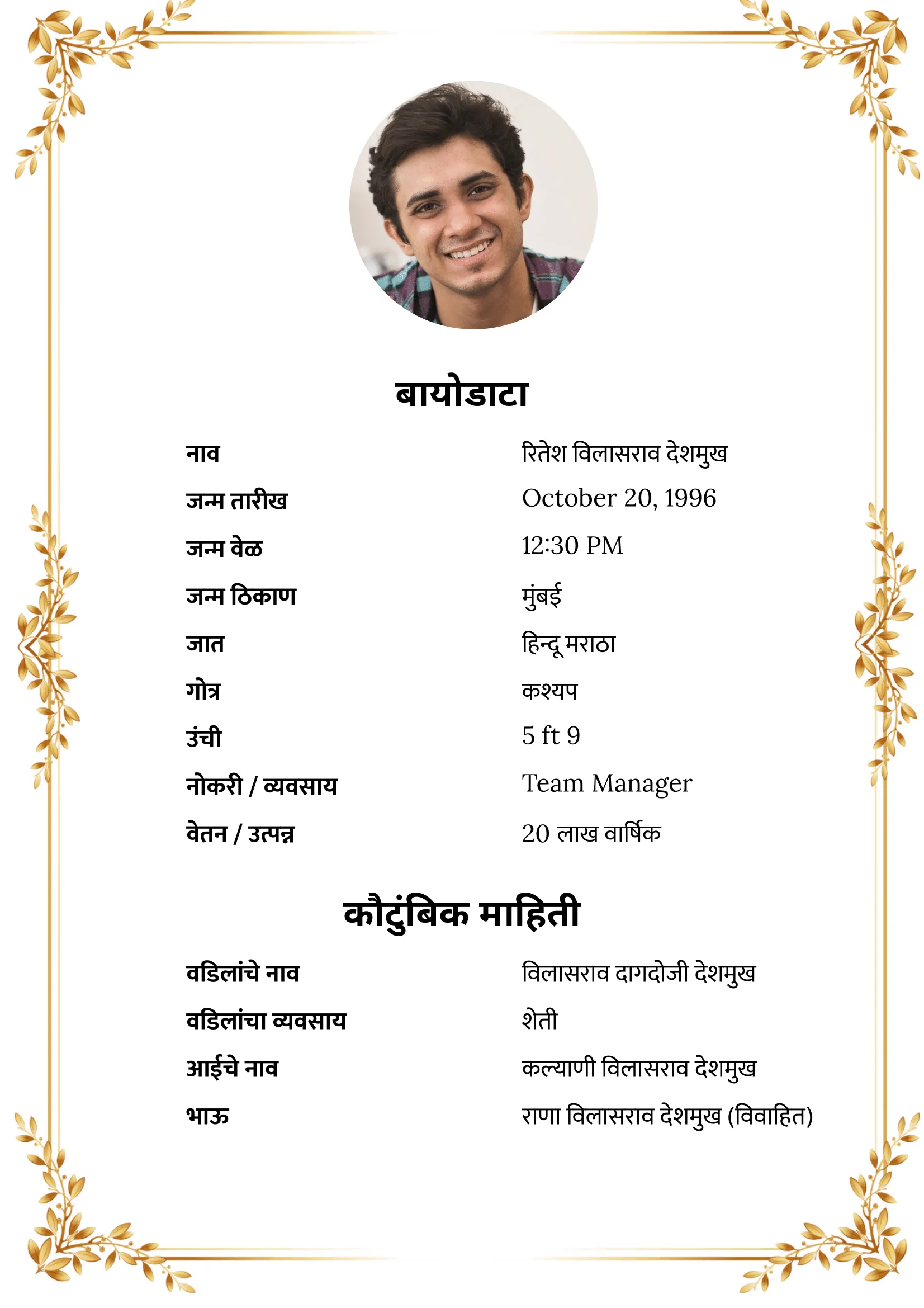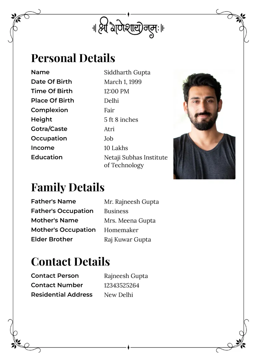 - Families wanting a neutral, elegant marriage biodata format that suits most communities.
