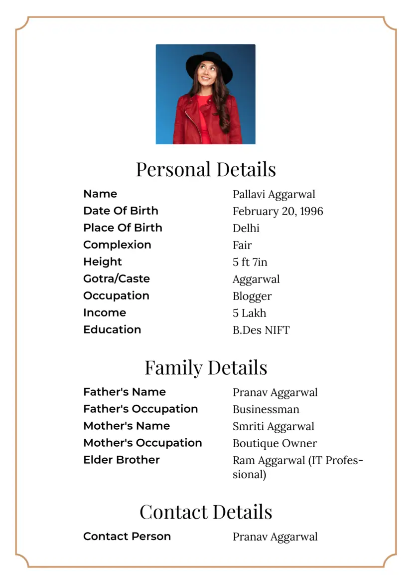 - Candidates who prefer a refined, cultural look for their biodata for marriage.