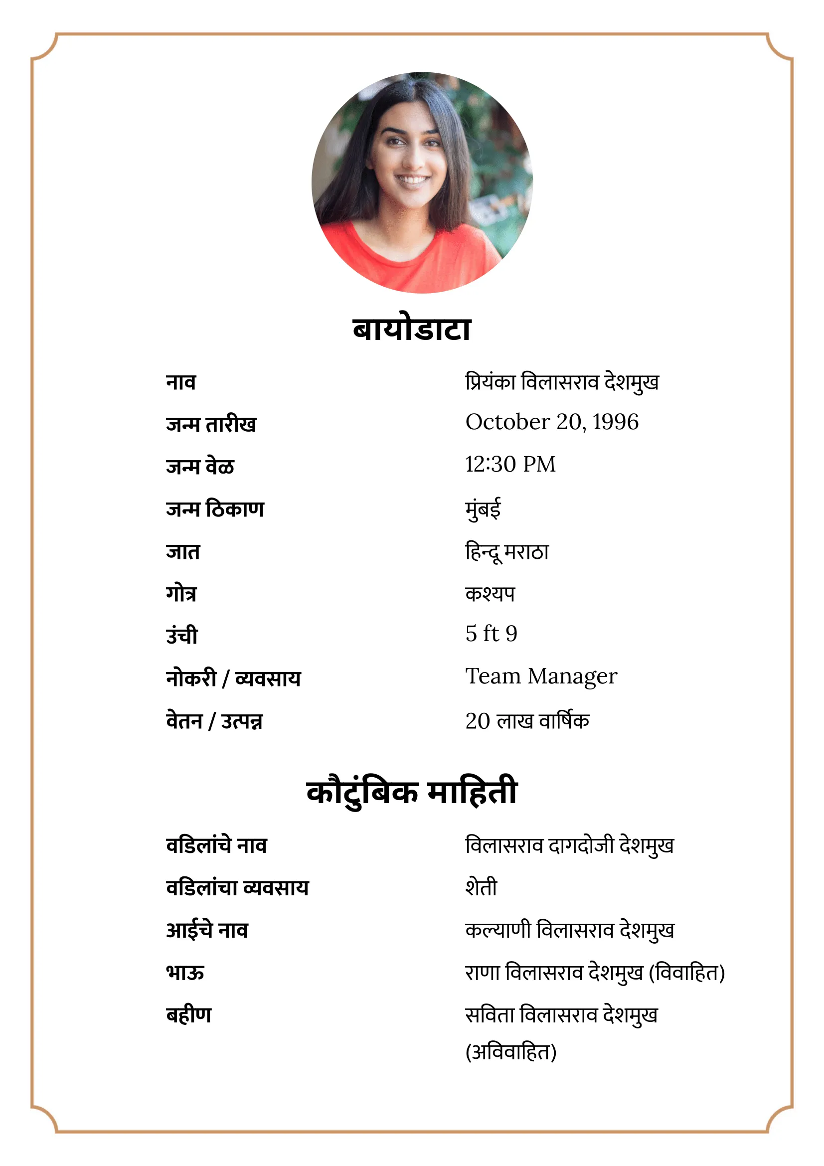 Latest Marathi Biodata Formats